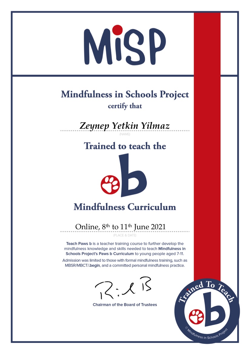 İngiltere Mindfulness In Schools Project Lisanslı Eğitmeni